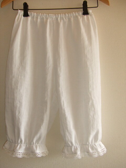 ソフトな風合いの軽起毛のビエラで、(生地の厚みは普通)アンダー用のドロワーズを作りました。 ウエスト総ゴム(ソフトゴム使用)2本で、取り換え口を付けています。 スカート・ワンピースなど幅広くご利用いただけます。丈サイズは修正可能です。備考欄に希望サイズをご記入ください。 素材: 綿100%(レース綿100%) カラー: オフシロ サイズ: 100cm〜160cm 原産国: 日本製 お洗濯: 洗濯機可(手洗い推奨)・ドライクリーニング ◆◇◆ご注意◆◇◆画面と実物では、多少色具合が違って見える場合もございます。ご了承ください。 【実寸】 サイズ 100 110 120 130 140 150 160 ウエスト 40(72) 42(74) 44(76) 46(78) 48(80) 50(86) 52(92) 丈 28 32 36 40 44 48 52 【サイズ表】 【KIDS】 サイズ 100cm 110cm 120cm 130cm 身長 98〜105 105〜115 115〜125 125〜135 バスト 49〜55 53〜59 57〜63 61〜67 ウェスト 45〜51 47〜53 49〜55 51〜57 ヒップ 55〜61 58〜66 62〜70 66〜74 参考年齢 3〜4 5〜6 7〜8 9〜10 サイズ 140cm 150cm 160cm 身長 135〜145 145〜155 155〜165 バスト 64〜72 70〜78 76〜84 ウェスト 53〜59 56〜63 58〜66 ヒップ 70〜78 76〜84 82〜90 参考年齢 11〜12 13〜14 15〜16