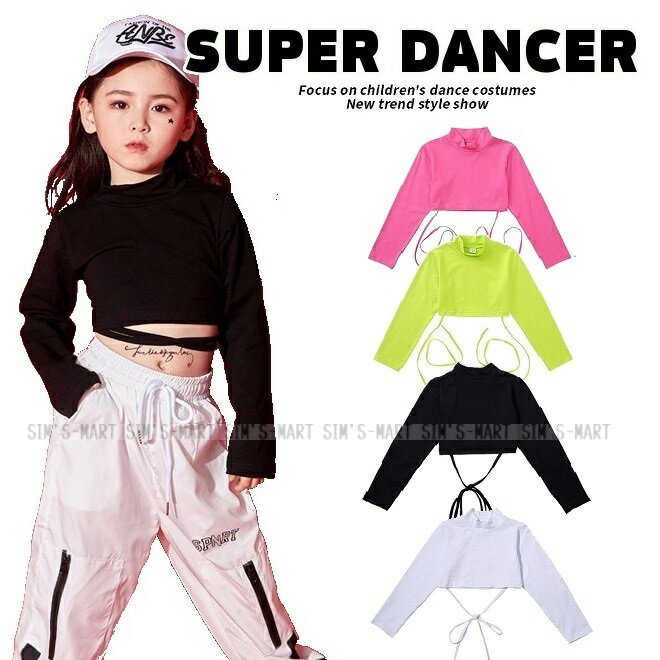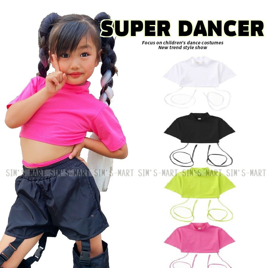 ダンス衣装 キッズ トップス へそ出し ヒップホップ ガールズ キッズダンス衣装 レッスン着 ショート丈 K-POP 韓国 黒 白 ピンク 黄緑