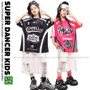 ヒップホップ 衣装 キッズダンス衣装 セットアップ 韓国 子供ダンス服 派手 ピンク 黒 白 K-POP hiphop 男の子 ガールズ ダンス衣装 キッズ レーサー風 トップス パンツ
