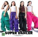 ダンス衣装 K-POP 韓国 子供ダンス服 ダンスウェア キッズダンス衣装 セットアップトップス パラシュートカーゴパンツ 白 茶色 緑 紫 黒 ピンク