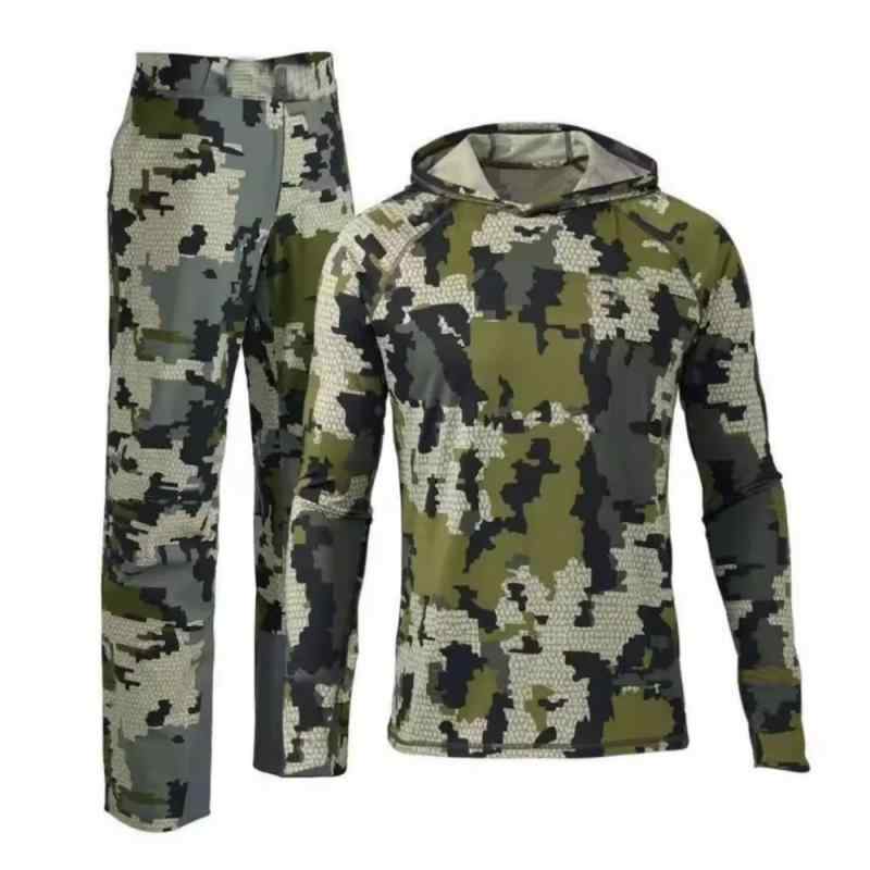 フィッシングウェア メンズ 迷彩柄 フード付き 釣り用ウェア 上下セット アウトドア スポーツ ウェア 速乾性 通気性 UVカット トレーニングウェア
