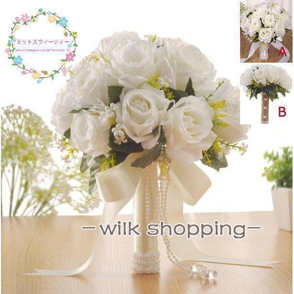 ブライダルブーケ ウエディングブーケ 花束 ホワイト 花嫁 ウェディング用 写真撮り お祝い お誕生日 結婚式 披露宴 プレゼント 大