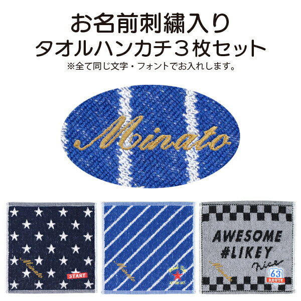 お支払い後2週間程度で出荷【メール便2点以上で送料無料】お名前刺繍入り タオルハンカチ3枚セットプチプラ プチギフト プチプレゼント 入園祝い 入学祝い 名入れ キッズ 男の子 スポーティー カジュアル