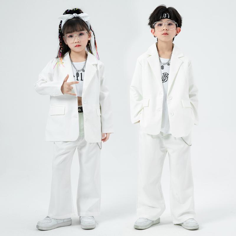 ダンス衣装 セットアップ 子供 白 ポッピン 春 祭り パフォーマンス 男の子 ヒップホップ 女の子 大きめサイズ ユニセックス 韓国 ストリート クール かっこいい