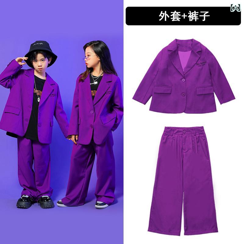 短納期 紺色 b体 スーツ 発表会 キッズ ダンス衣装 セットアップ 上品 かっこいい ネイビー スーツセット 長袖 パンツスーツ 女の子 男の子 ジャケット トップス ダボパン ズボン ジャズダンス ヒップホップ ポッピング ロッキング 団体服 演出服 原宿系 個性派 韓国 K-POP