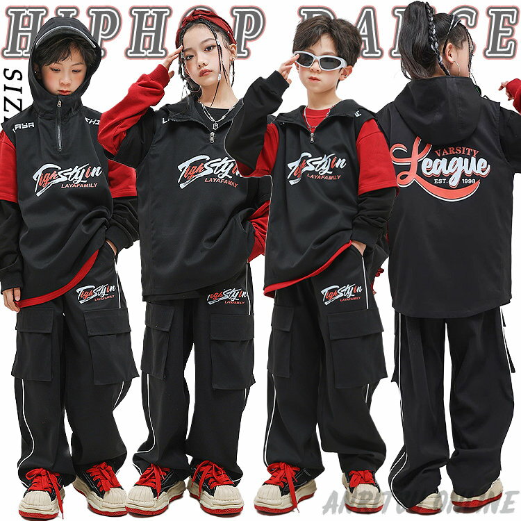 赤 黒 キッズ ダンス 衣装 セットアップ かわいい おしゃれ かっこいい 男の子 女の子 ゆったり トップス パンツ レッド ブラック ポッピング ロッキング ジャズダンス jazz ヒップホップ 派手 韓国 kpop hiphop 練習着 応援団