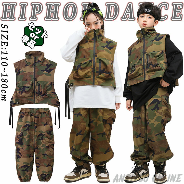 迷彩 ショート ベスト セット 単品 おしゃれ キッズ ダンス衣装 セットアップ ロングtシャツ 黒 白 おしゃれ 長袖 男の子 女の子 かっこいい ファション カジュアルシャツ トップス カーゴパンツ ジャズダンス ヒップホップ ポッピング 団体服 発表会 演出服 応援団 練習着