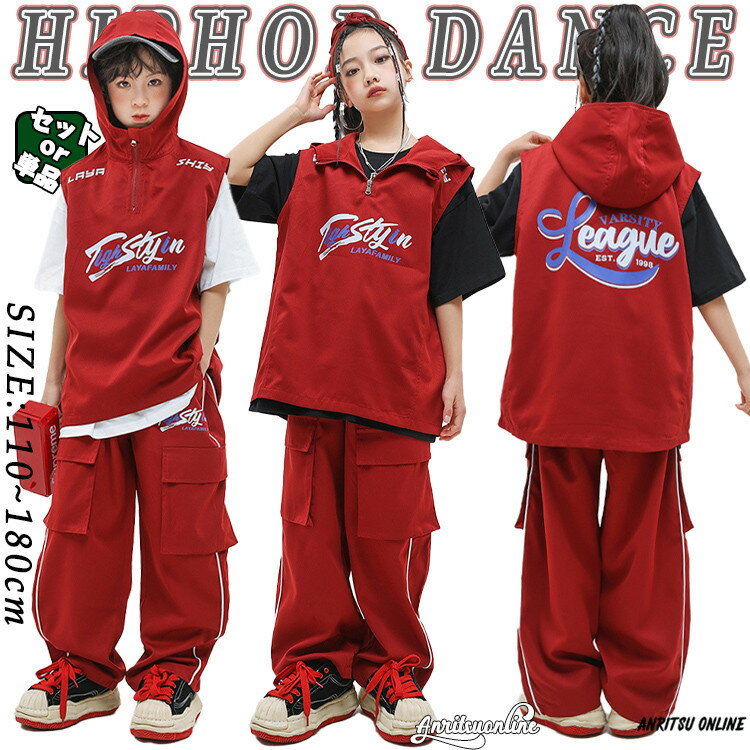 赤 ノースリーブパーカー キッズ ダンス衣装 セットアップ 女の子 男の子 子供服 カーゴパンツ トップス パンツ 白 黒 ジャズダンス ヒップホップ ポッピング 韓国 K-POP hiphop 演出服 団体服 応援団 練習着 発表会 おしゃれ ファッション 個性派 かっこいい ゆったり 派手