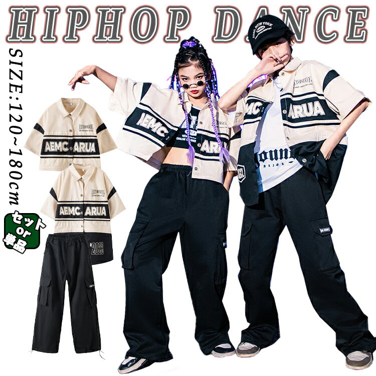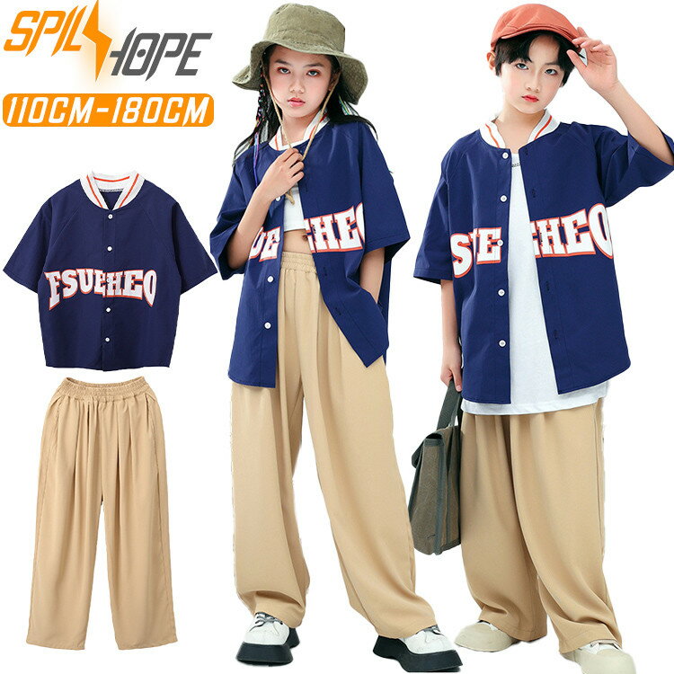 紺色 ベージュ ベースボールシャツ 半袖 キッズ ダンス衣装 セットアップ ネイビー 男の子 女の子 子供 子ども トップス パンツ ダンスウェア ヒップホップ ジャズダンス ポッピング 演出服 練習着 団体服 応援団 発表会 個性派 韓国 k-pop hiphop jazz かっこいい おしゃれ
