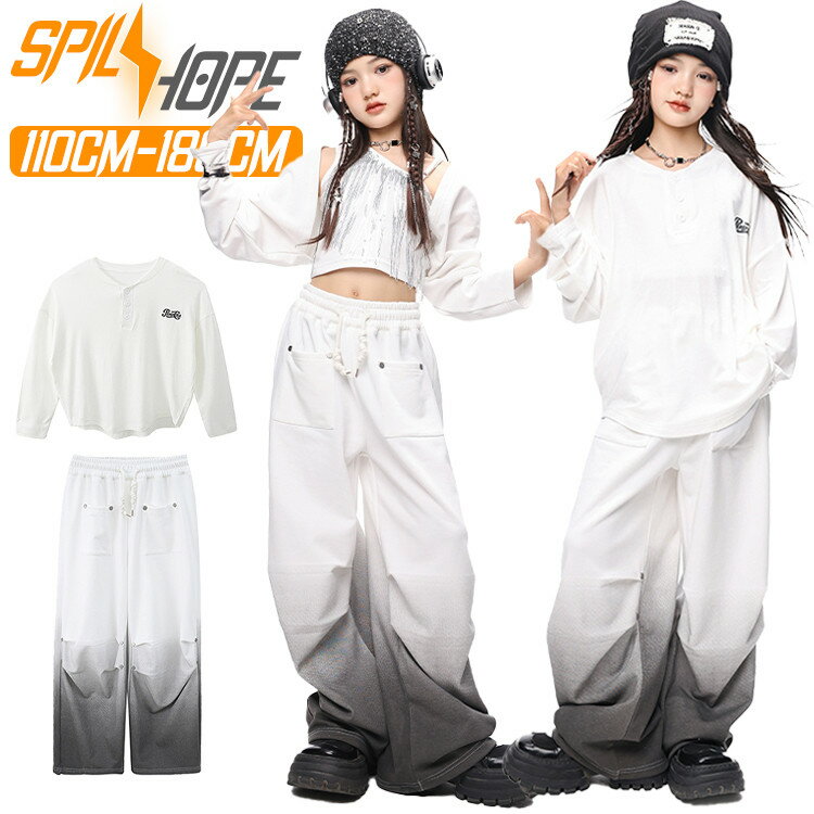 白 ホワイト ロングTシャツ ゆったり jazz キッズ ダンス衣装 長袖 女の子 へそ出し キャミソール カーゴパンツ 上下セット セットアップ トップス パンツ ヒップホップ ジャズダンス ポッピング 演出服 練習着 団体服 応援団 発表会 韓国 k-pop hiphop おしゃれ かっこいい