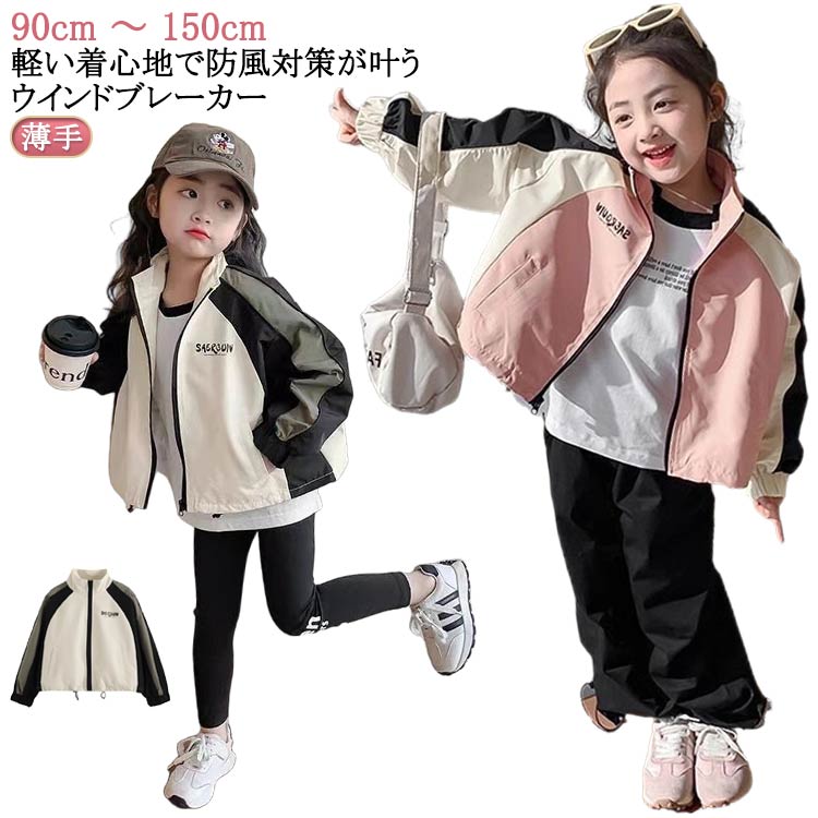 キッズ マウンテンパーカー 女の子ジャケット 春 秋 アウター ウインドブレーカー 防風 コート 上着 長袖 薄手 ジップアップ トップス ジュニア服 おしゃれ 90 100 110 120 130 140 150
