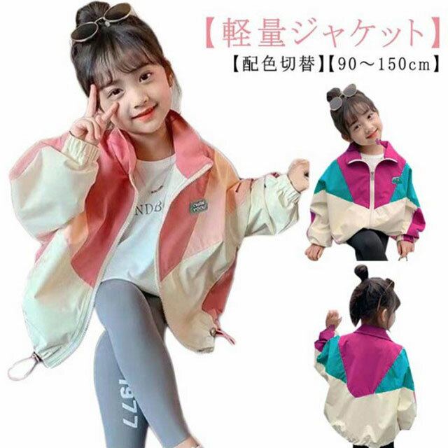 ジャケット キッズ 配色 切替 ブルゾン ジャンパー 女の子 男の子 フードなし アウター 薄手 軽量 羽織 春秋ジャケット ウィンドブレーカー ジュニア マウンテンパーカー 子ども 上着 パーカー 韓国 子供服 通園 通学 90 100 110 120 130 140 150cm 送料無料