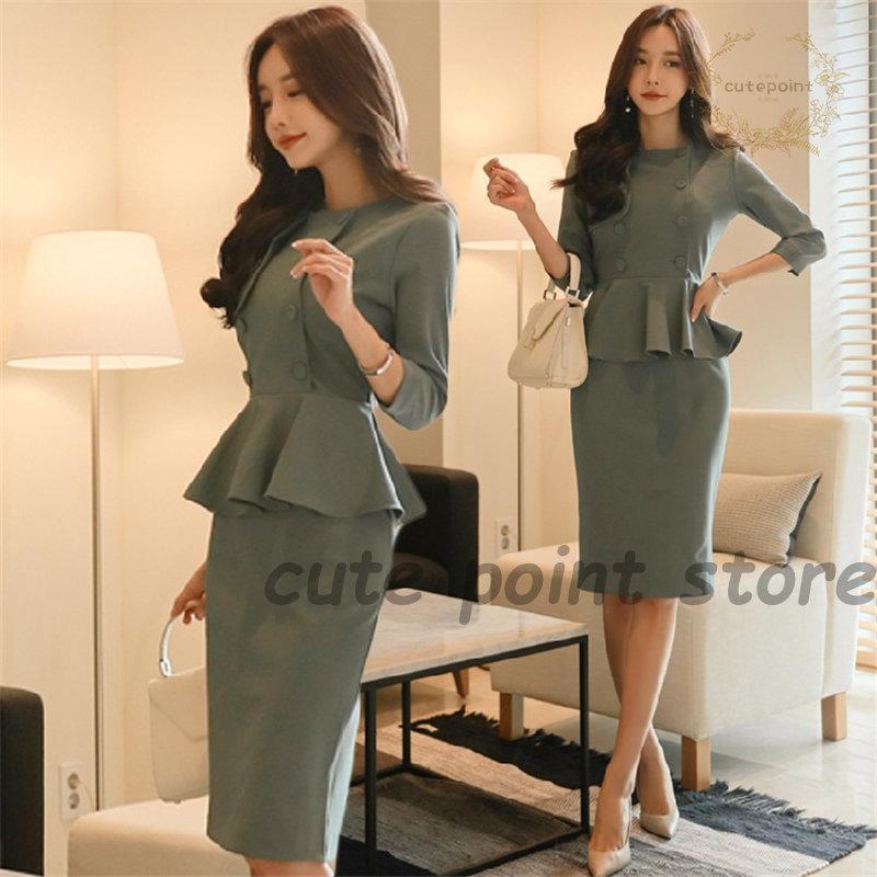 ピース 二次会 長袖 タイト ミディアムドレス シンプル 女性 大人 エレガント セレブ ペプラム パーティー デートワンピ 高品質