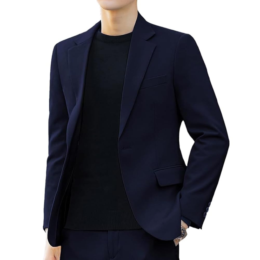 【送料無料】[MTKCNTL] メンズ テーラードジャケット スーツ カジュアル おしゃれ 通勤 ブレザー 大きいサイズ ジャケット 長袖 無地 ゆったり 通学 アウター シンプル スリムフィット 上着 春 秋 冬 日常 色:ネイビー、サイズ:L