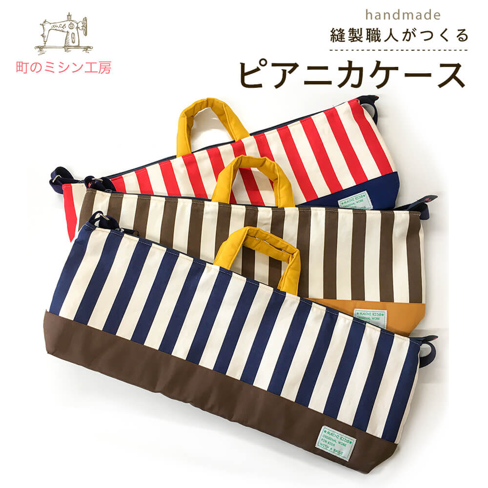 ピアニカケースの生地柄(デザイン)の特徴 ストライプと切り替え色のコントラストがかっこいい。 高学年になってもお使いいただけます。裏地の星柄もアクセント。 ピアニカケースの特徴 安心の日本製!当社で丁寧に縫製しました。 町のミシン工房の縫製職人による手作り品です。お子様にも安心して使っていただけるよう安全性と品質にこだわりました。 32鍵用のピアニカケース 32鍵用のハードケースならすっぽり入ります。 裏地付の丈夫なバッグ 表裏の2枚仕立て、中綿入りでクッション性のあるバッグです。 持ち手とショルダーの2wayタイプ。開け閉めしやすい上面ファスナーで中身を大切に守ります。 同柄のセット販売もございます。 同じ生地を使った商品を各種取り揃えております。セット・単品アイテム、シーンに合わせてお選びください。 ピアニカケースの商品仕様 素材 綿100% サイズ 縦19.5cm × 横48cm × 底マチ7cm ショルダー長さ 51〜99cmまで調節可能 製造国 日本 ピアニカケースの注意事項 ・慎重にご検討いただいてからのご注文をお願い申し上げます。 ・商品によって形やサイズに誤差がある場合がございます。 ・洗濯機でのお洗濯をされる場合、濃色のものは他のものと分けるか、ネットに入れてください。塩素系漂白剤や乾燥機のご使用は避けてください。 ・生地の裁断部分により、柄の出方が商品画像と多少異なる場合がございます。 ・商品画像の色について、できるだけ商品そのものに近づけるようにしておりますが、お使いのモニタや環境により多少色見が異なる場合がございます。 ピアニカケースの対応サービス こちらの商品は以下のサービスに対応しております。詳しくは各アイコンをクリックしてください。 【用途】 プレゼントとして: 入学祝い 入園祝い 卒業祝い 卒園祝い 卒園記念品 入園記念 お祝い(姪っ子・甥っ子 お孫さん 娘 息子) 誕生日祝い バースデイ ギフト 実用として:入学準備 入園準備 入園グッズ 入学グッズ 小学校 保育園 幼稚園 ピアニカケース ピアニカ入れ ピアニカバッグ おけいこ 習い事 音楽教室 音楽クラブ 音楽部 発表会 塾 クラブ活動 お稽古 【特徴】 布製 ハンドメイド 手作り かわいい おしゃれ かっこいい 裏地付き(内貼り)中綿入り 丈夫 しっかり 長持ち 洗える 洗濯可 袋物 たくさん入る 縫製が丁寧 裁縫 きれい 持ち手部の薄綿が手にフィット シンプル コットン ストライプ 【キーワード】 小学生 低学年 高学年 1学期 2学期 3学期 年少 年中 年長 子供 子ども こども キッズ お揃い(おそろい)通園グッズ 通学グッズ 学用品 スクール用品 入学用品 ヤマハ PE32カラーバリエーション 関連アイテム その他のピアニカケース 同じシリーズのアイテム