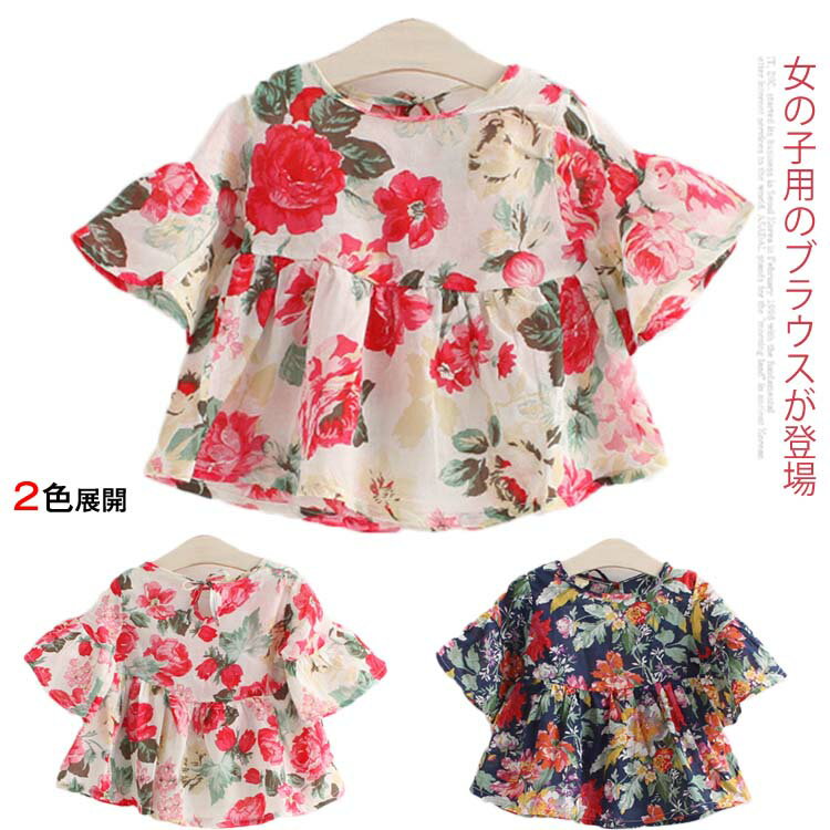 女児 ブラウス 七分丈袖 キッズ シャツ 花柄 Tシャツ ジュニア トップス 薄手 女の子 春 夏 リゾート オシャレ レトロ送料無料