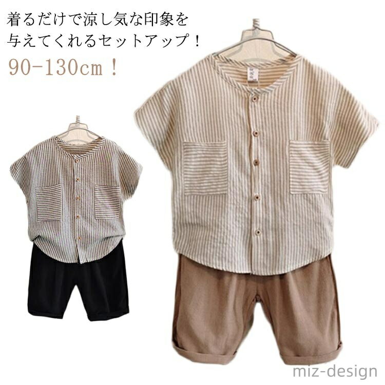 90-130cm!着るだけで涼し気な印象を与えてくれるセットアップ!清涼感のあるリネン素材で爽やかな着心地を持続。サラリとした着心地で涼しくて おしゃれで可愛いボトムス なにより楽チンなのがうれしいですよね。シンプルで着回しやすいので、セット揃いは持っておきたいアイテムです。 サイズ 90 100 110 120 130 サイズについての説明 90着丈40バスト72パンツ丈36ウエスト38おすすめ身長80-90cm100着丈42バスト76パンツ丈37ウエスト40おすすめ身長90-100cm110着丈45バスト80パンツ丈41ウエスト42おすすめ身長100-110cm120着丈46バスト82パンツ丈42ウエスト44おすすめ身長110-120cm130着丈50バスト84パンツ丈46ウエスト46おすすめ身長120-130cm※サイズは平置き実寸になります。サイズ表の実寸法は商品によって1-3cm程度の誤差がある場合がございます 素材 ポリエステル 色 ベージュセット ブラックセット 備考 ●サイズ詳細等の測り方はスタッフ間で統一、徹底はしておりますが、実寸は商品によって若干の誤差(1cm〜3cm )がある場合がございますので、予めご了承ください。 ●商品の色は、撮影時の光や、お客様のモニターの色具合などにより、実際の商品と異なる場合がございます。あらかじめ、ご了承ください。 ●製品によっては、生地の特性上、洗濯時に縮む場合がございますので洗濯時はご注意下さいませ。 ▼色味の強い製品によっては他の衣類などに色移りする場合もございますので、速やかに(脱水、乾燥等)するようにお願いいたします。 ▼生地によっては摩擦や汗、雨などで濡れた時は、他の製品に移染する恐れがございますので、着用の際はご注意下さい。 ▼生地の特性上、やや匂いが強く感じられるものもございます。数日のご使用や陰干しなどで気になる匂いはほとんど感じられなくなります。