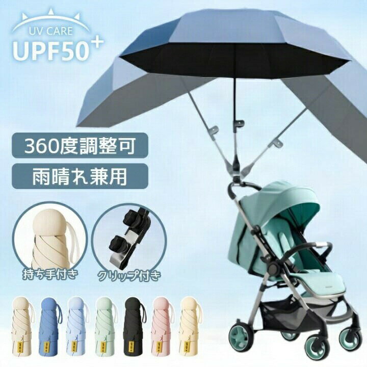 ベビーカー傘 日傘 傘ホルダー 傘スタンド 日よけ 折りたたみ傘 ベビーカー用日傘 持ち手付き クリップ付き 360°角度調整 ペットカート用 傘立て 自転車 UVカット 設置簡単 日焼け止 熱中症対策 晴雨兼用 お出かけ