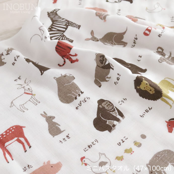 ずかんタオル ミニバスタオル 47 x 100cm どうぶつ 日本製 プールタオル こどもバスタオル calmland カームランド