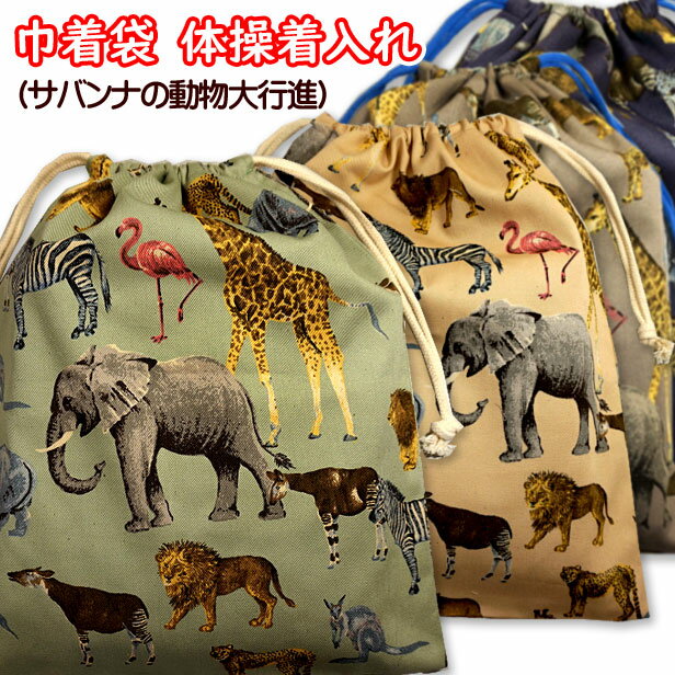 巾着 大 体操着入れ 1点 サバンナ の 動物 迷彩 動物柄 男の子 着替え袋 巾着袋 小学校 こども かっこいい
