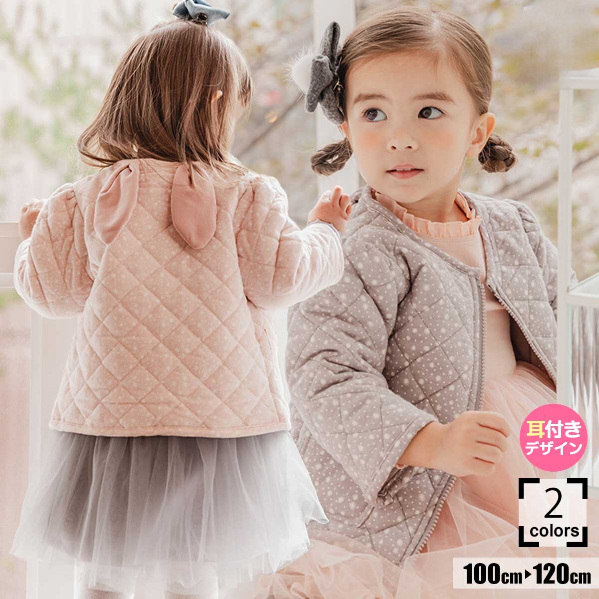 【送料無料】セール 4700円→1980円 秋 冬 子供服 子ども服| 動物 シリーズ|うさ耳付き 中綿ジャケット(ピンク グレー)アウター ポケット 女の子 キッズ こども あったか カジュアル かわいい 可愛い オシャレ おしゃれ デイリー アニマル うさぎ