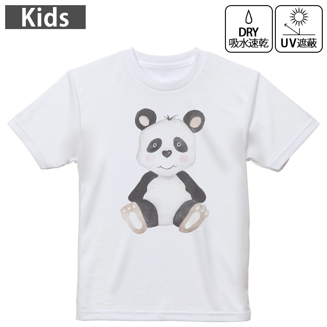 キッズ ドライTシャツ ホワイト 半袖 4.1オンス トレーニング スポーツ ジム 運動会 ドライアスレチック UVカット 紫外線遮蔽 吸水速乾 120 130 140 150 160 017514 アニマル パンダ 動物 かわいい