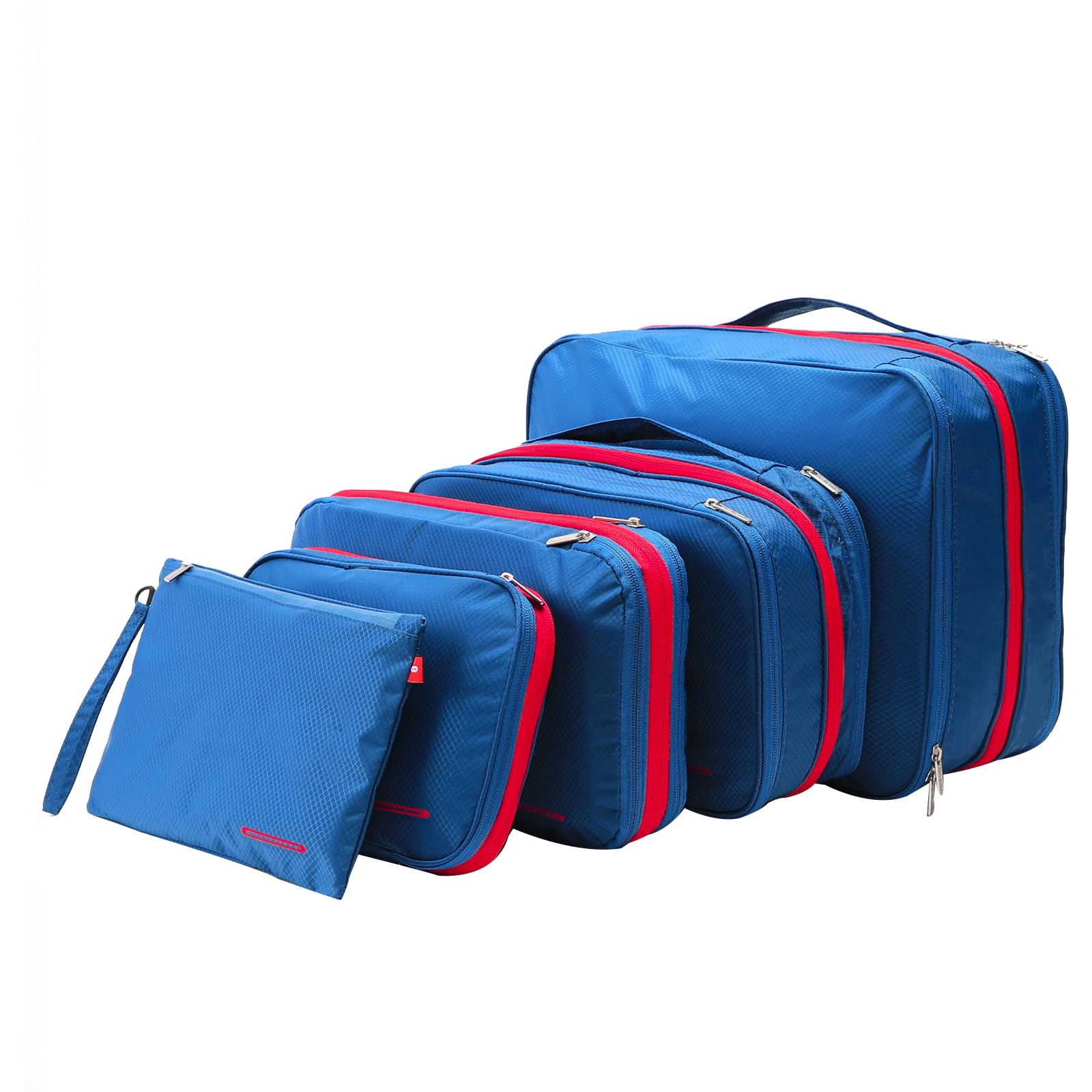 【送料無料】BeeNesting旅行圧縮バッグ ファスナー圧縮で衣類スペース50節約 軽量 出張 旅行 可変スペース 2つの収納コンパートメントがあります… 色:ブルーレッド、サイズ:5set(Lite+S+M+L+XL)