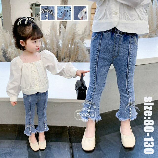 子供服 デニムパンツ 女の子 タイト ベビーパンツ 長ズボン ロングパンツ デニム ストレッチパンツ 春秋 フレアパンツ ジーンズ ジーパン カジュアル ボトムス キッズ こども 可愛い きれいめ //卒園式/入学式/パーティ 3タイプ 80 90 100 110 120 130
