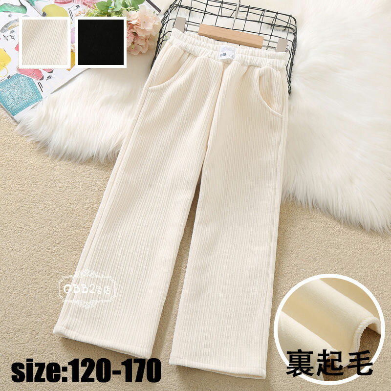 ガウチョパンツ ロング丈 ズボン 秋冬 裏起毛 あつたか 厚手 暖かい コーデュロイ ロングパンツ ワイドパンツ ボトムス 女の子 子供服 カジュアルパンツ 純色 ゆったり キッズ こども 可愛い きれいめ 卒園式/入学式 ブラック オフホワイト 120 130 140 150 160 170cm