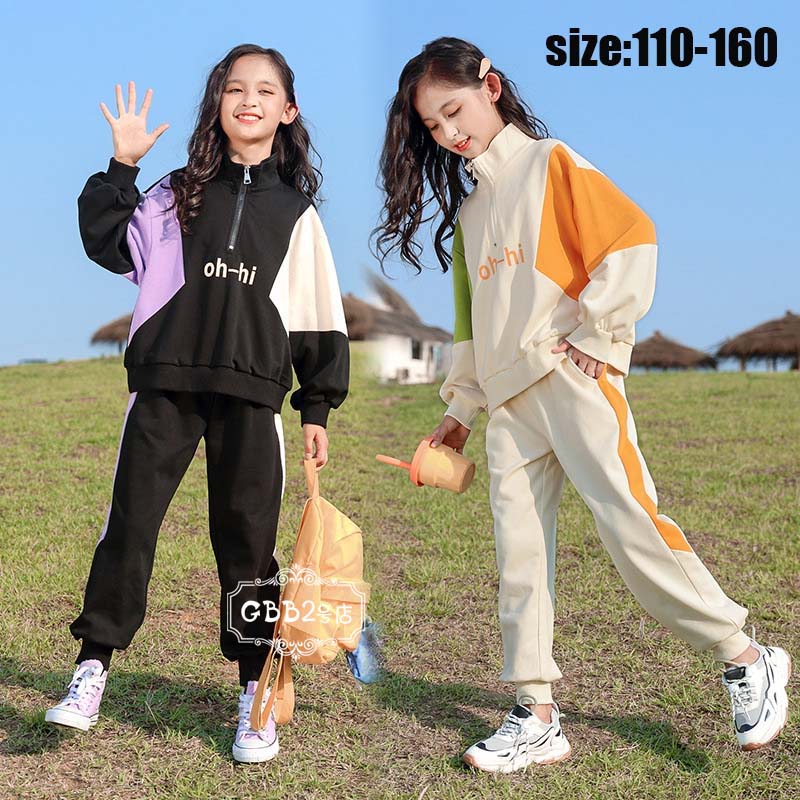 韓国子供服 セットアップ 女の子 春秋 長袖 カジュアル ナチュラル パーカー ロングパンツ 上下セット スポーツウェア カジュアル ゆったり キッズ 可愛い きれいめ ブラック ホワイト 110 120 130 140 150 160