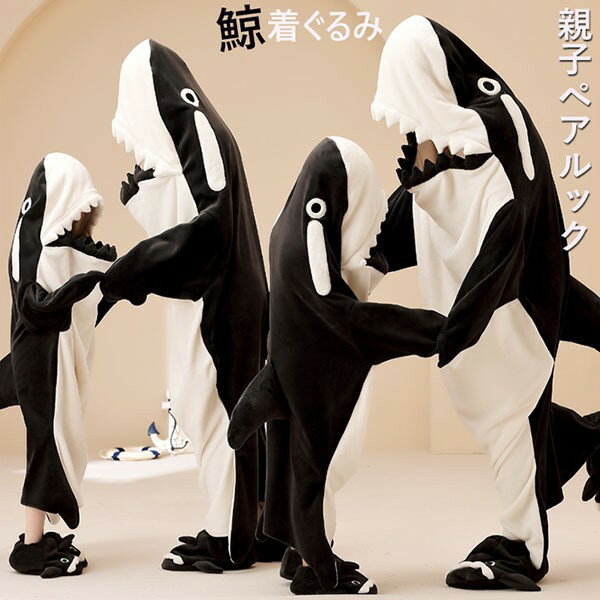 親子お揃い 着る毛布 鯨柄 サメ柄 着ぐるみ ユニセックス 家族 パジャマ オールインワン 大きいサイズ お揃い ルームウェア ペアカップル 親子コーデ 親子ペアルック 部屋着 プレゼント 寝巻き 寝間着 長袖 可愛い ギフト S M L XL 2XL 3XL 4XL dw180s1s1t2
