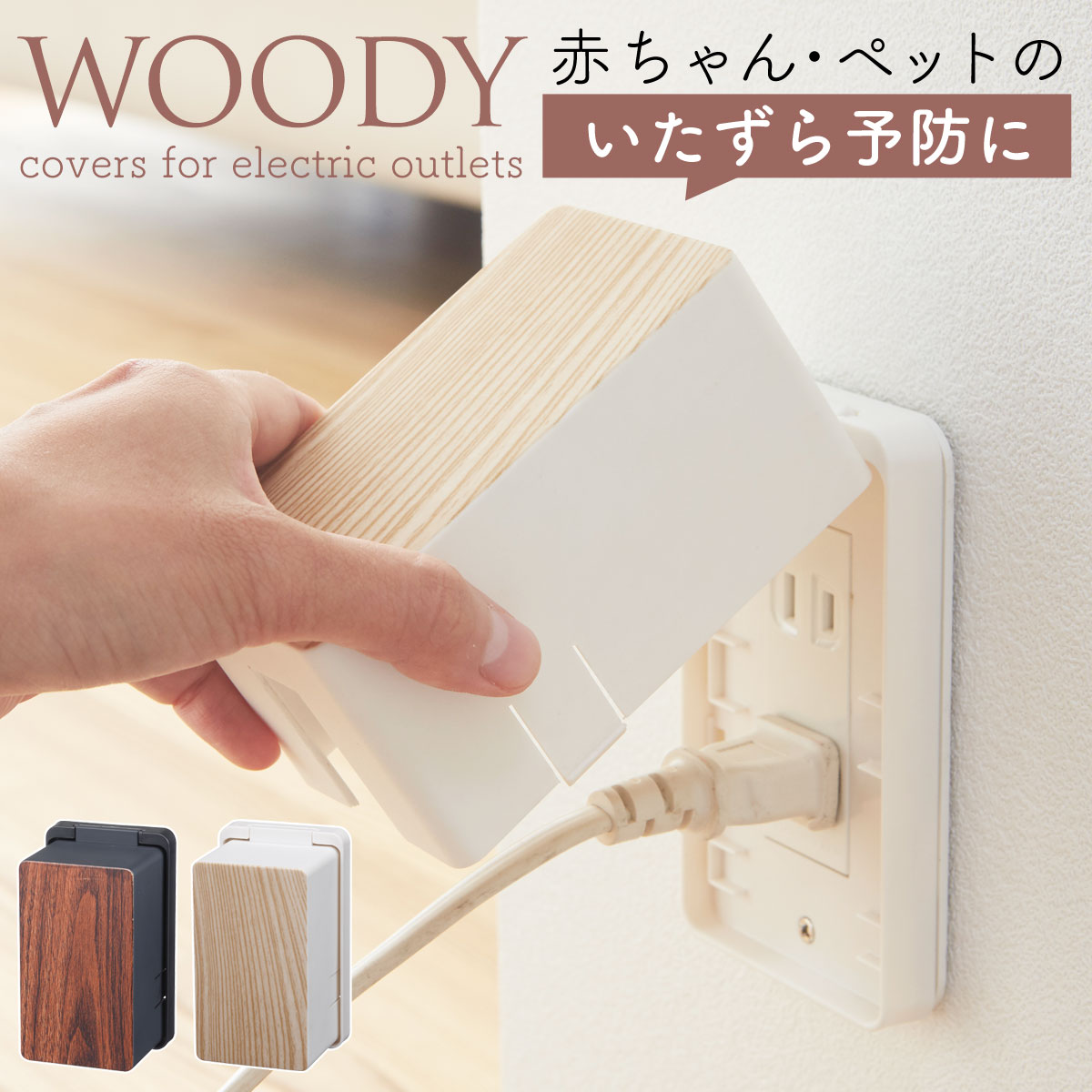 コンセントガード ウッディ WOODY コンセントカバー コンセントボックス コンセント収納 リビング 木目調 モダン 北欧 シンプル おしゃれ ホワイト ブラック 3411 YAMAZAKI 山崎実業 フルカバー コンセント隠し 感電防止 子供 ペット いたずら防止 事故防止