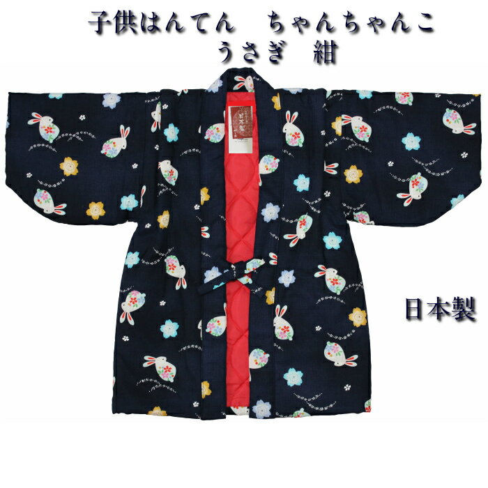 子供 ちゃんちゃんこ 半纏 はんてん 袢天 女の子 女児 うさぎ柄 紺 ネイビー 裏キルト サイズ90cm 100cm 110cm 120cm 日本製【当店オススメ】