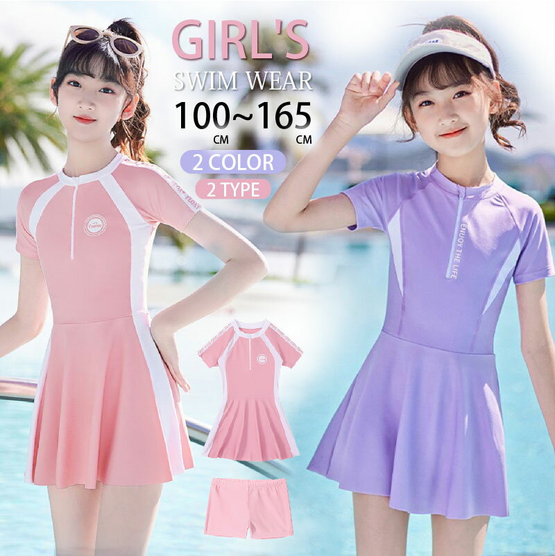キッズ 水着 女の子 150 160 ワンピース セパレート 半袖 小学生 ズボン ショートパンツ かわいい お腹隠れる 水着セット フィットネス 体型カバー 露出控えめ 着やすい 子供用 可愛い ジュニア UVカット シンプル スクール 海水浴 夏休み 上下セット