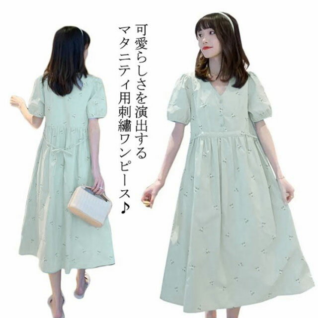 マタニティ ワンピース 半袖 ワンピ 刺繍 Vネック 妊婦 半袖ワンピース マタニティウエア 産後 産前 ゆったり 体型カバー 大きいサイズ 入院 授乳 春 夏 可愛い おしゃれ コットン 送料無料