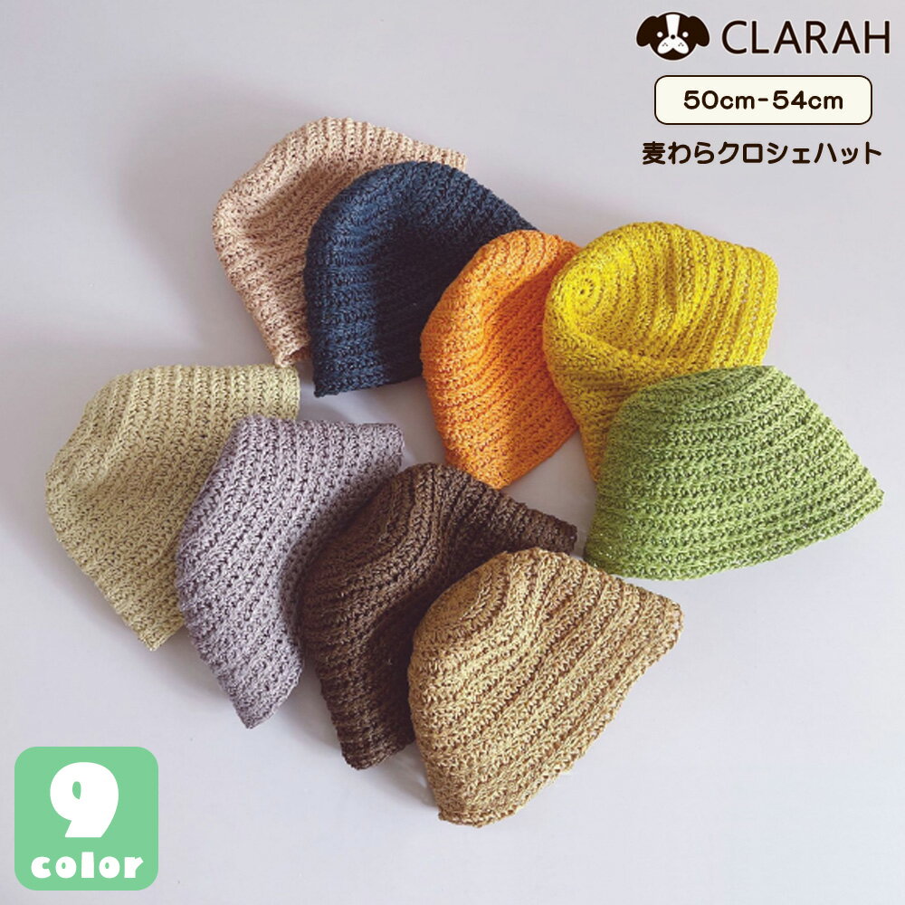 キッズ 麦わら クロシェ 50-54cm 9カラー クロッシェ 麦わら帽子 アウトドア 帽子 子供 幼児 熱中症対策 紫外線 日よけ 日焼け ネコポス送料無料