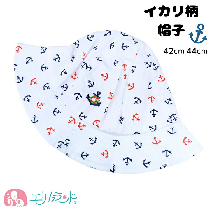 帽子 ハット 新生児 ベビー 赤ちゃん 子供 女の子 男の子 イカリ柄 総柄 春 夏 熱中症対策 かわいい おしゃれ 42cm 44cm 園児 幼児 保育園 おでかけ 外遊び 公園 プレゼント 出産祝い 在庫処分品 送料無料