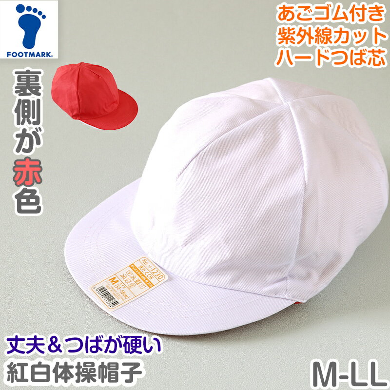 紅白帽子 男の子 女の子 あごゴム付き 赤白 体操帽 つばが硬い キャップ 紫外線対策 定番 運動会 体育祭 綿 ポリエステル フットマーク M〜LL 六方型 キッズ 小学生 通学 UV対策 熱中症対策 遠足 M L LL