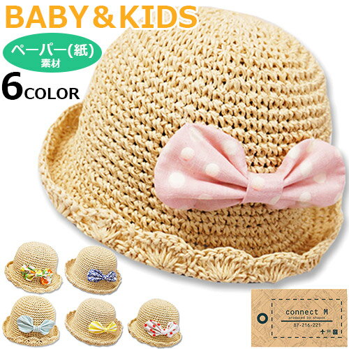 【SALE 30%OFF】日本製 ペーパーHAT リボン付き ハット ペーパー素材 女の子 あごひも付き 麦わら帽子 日よけ対策 UV対策 熱中症対策 公園 通園 遠足 子供用 キッズ ベビー 子供 おでかけ【コネクトエム】【メール便送料無料】01-1010