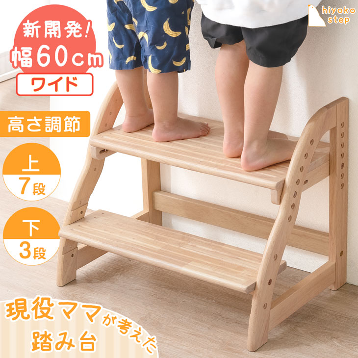 ■正午~クーポン5%引■ 【新開発】現役ママが考えた 踏み台 2段 ワイド 60cm ステップ&スツール 高さ調節 4段階 天然木 安心の水性塗装 ステップ台 ステップ スツール 足台 ふみ台 踏台 子供 こども 子ども キッズ 幼児 木製 玄関 キッチン 洗面所 お手伝い 2人