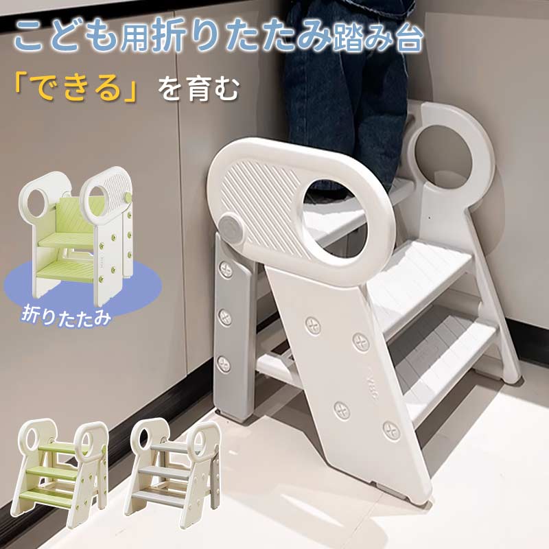 メーカー希望小売価格はメーカーサイトに基づいて掲載していますメーカー希望小売価格はメーカーサイトに基づいて掲載しています\今週の目玉セール!/人気アイテムがお得に買えるチャンス 商品説明商品名踏み台 子ども ステップ 折りたたみ 踏み台 高さ調節 2段 3段 ステップ台 幼児 台所 アイボリー ふみ台 子供 トイレ キッズ 足置き台 庭手洗い キッズステップ 昇降ステップ 可変式 軽量 手すり付き 滑り止め 補助 補助便座 風呂台適 応サイズ展開サイズ:約41.5×43×52.5cm収納サイズ:約41.5×25.5×61cm素材ブラスチックカラーグリーン、グレーお勧めポイント折りたためる2段/3段可変式ステップで、自立心を育む踏み台がパワーアップ!【2段と3段可変式】:成長に合わせて簡単に調節できます。2段使用時、足場が広がります。【安定感抜群】:3層の科学的な13cm間隔でお子さまが簡単に上がり、下がりできます。45°三角形構造で、安定感抜群です。【手すり付き】:丸くて滑らかな手すりは、握り易くて子供の手を傷つけません。安心して昇り降りできます。【滑り止めステップ】滑り止めの表面で、転倒による怪我などを防止する仕様になります。【滑り止めマット】底面にはシリコーン滑り止めマット付き、安定してで床に擦り傷などが付きにくいです。【折りたたみ収納】コンパクトに折りたたんでスリムにできるため、使わないときは狭い場所にもすっきりと収納できます。【いろんなシーンで活躍】トイレ、洗面所、台所、お手伝いの時はもちろん、座ることもできます。注意事項※海外から輸入している商品です。箱に破れ、傷やへこみ、汚れなどのがある場合がございますが、本体は問題ございません。予めご了承下さい。※ご使用の際はお子様から目を離さないでください。※初期不良以外の返品は不可になります。※実際の色とモニター画面では、見た目の色に多少違いがあります。※商品の仕様はメーカー都合などにより予告なく変更する場合がございます。※また生産工場・生産時期により異なる場合がございます。製造国販売元中国
