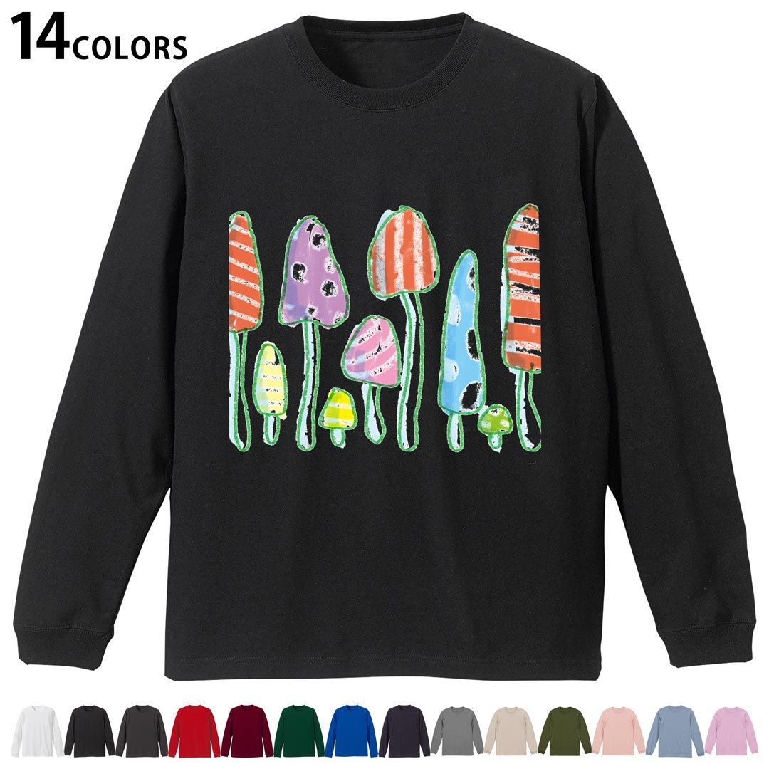 選べる14カラー 長袖リブ付きTシャツ メンズ レディース ユニセックス unisex 長袖 デザイン XS S M L XL 2XL Tシャツ ロング ティーシャツ T shirt 014808 きのこ 手描き カラフル