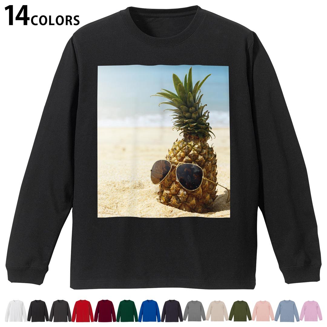 選べる14カラー 長袖リブ付きTシャツ メンズ レディース ユニセックス unisex 長袖 デザイン XS S M L XL 2XL Tシャツ ロング ティーシャツ T shirt 014841 夏 海 パイナップル 砂浜