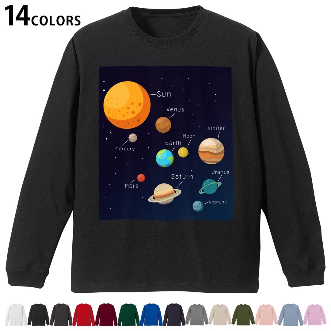 選べる14カラー 長袖リブ付きTシャツ メンズ レディース ユニセックス unisex 長袖 デザイン XS S M L XL 2XL Tシャツ ロング ティーシャツ T shirt 015996 太陽系 宇宙 惑星