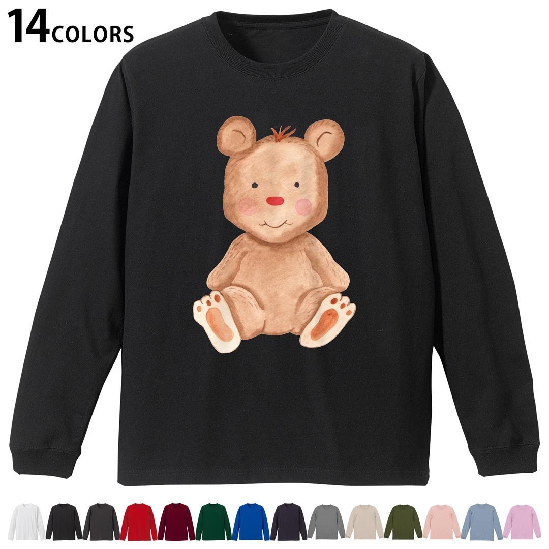 選べる14カラー 長袖リブ付きTシャツ メンズ レディース ユニセックス unisex 長袖 デザイン XS S M L XL 2XL Tシャツ ロング ティーシャツ T shirt 017516 くま 熊 かわいい