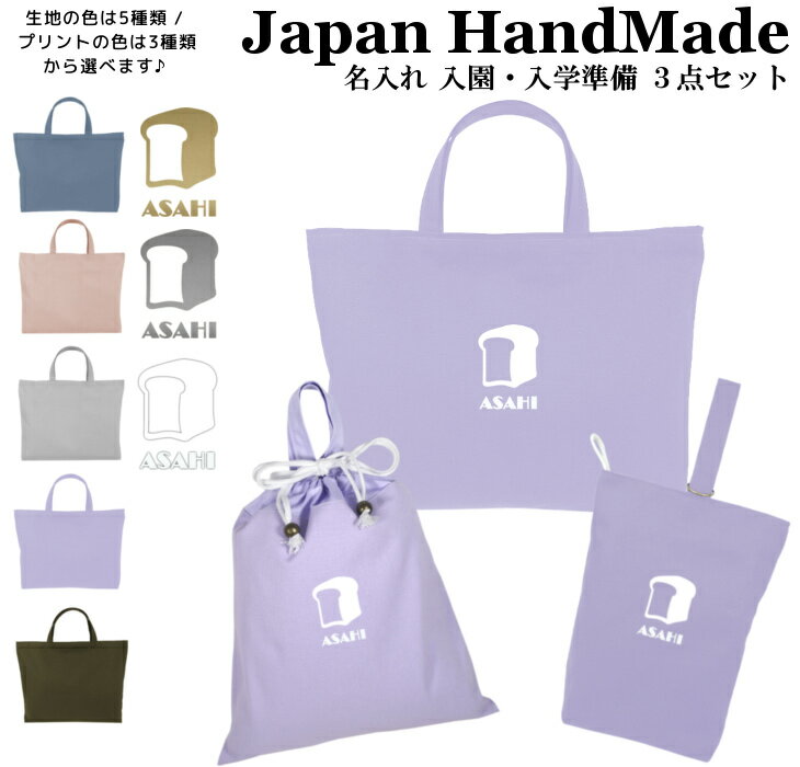 【16日まで店内2点以上で10%OFFクーポン有】 [受注生産] 【送料無料】ハンドメイド 名入れ 小学校 入学準備 3点 セット ( 食パン / くすみ カラー )[ レッスンバッグ Mサイズ 40 × 30 ] | 女の子 男の子 防水 撥水 レッスンバック マチ付き 入園準