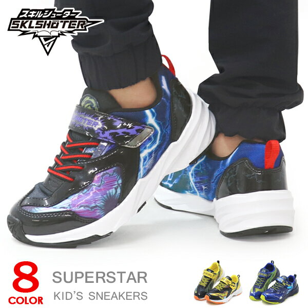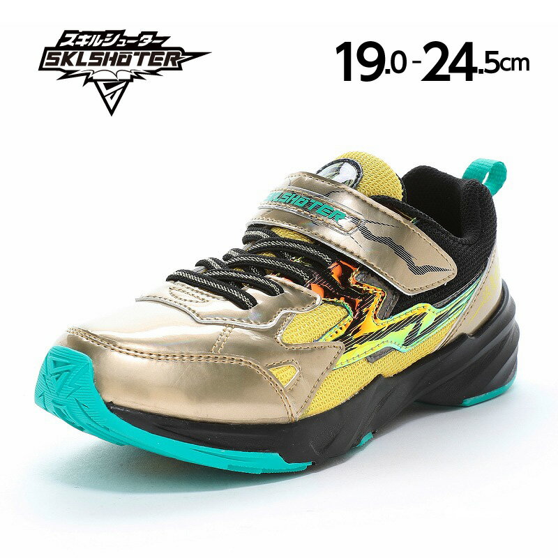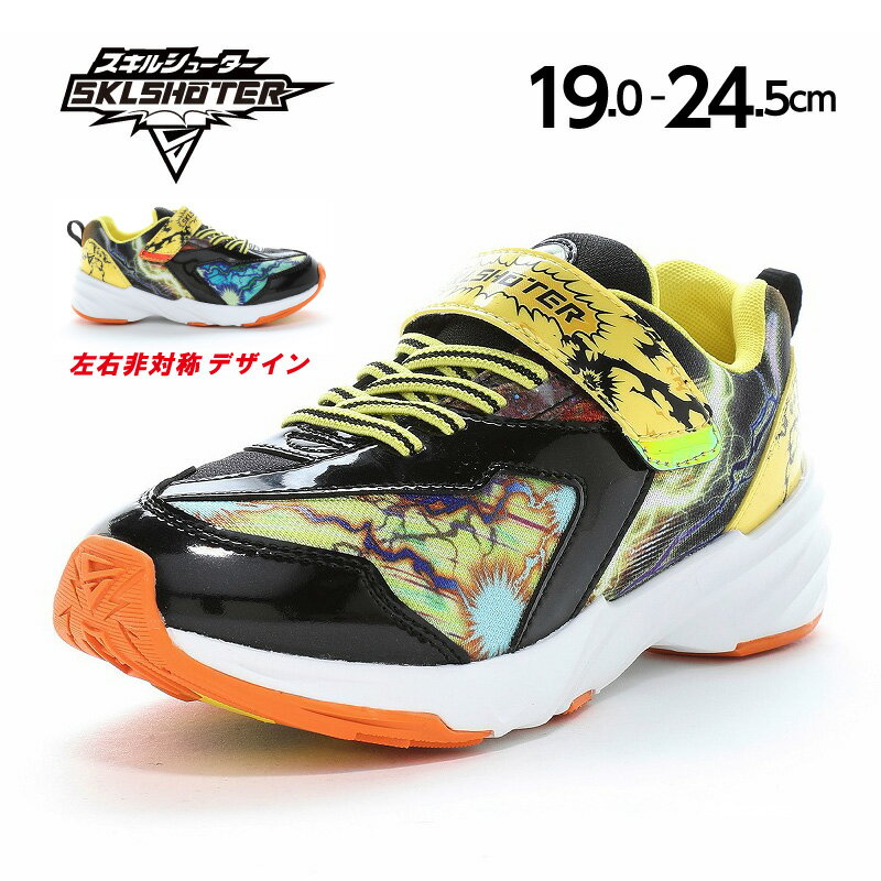 スキルシューター ジュニア キッズ SK 0058 ジンライ 男の子 靴 シューズ スニーカー ランニングシューズ マジックテープ 通学 運動 ブラック 黒 イエロー 黄色 送料無料 SKLSHOTER 12299213 12299216