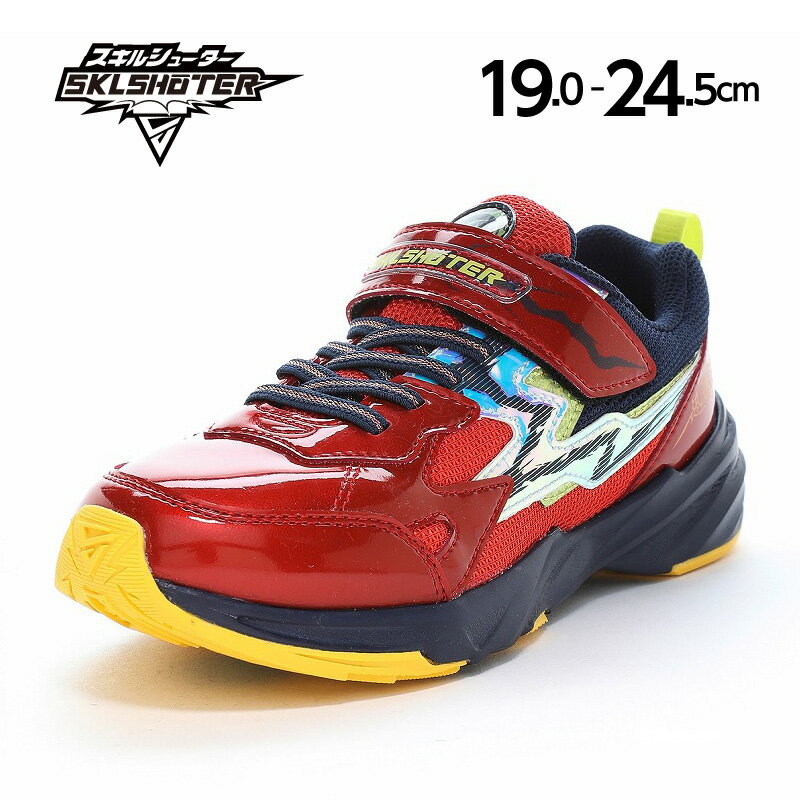 ムーンスター スキルシューター スニーカー SK0071 ジンライ レッド・イエロー・ブラック 19cm〜24.5cm キッズ ジュニア 男の子 シューズ 子供靴 運動靴 通学靴 履きやすい靴 紐なし靴 マジックテープ ベルクロ 面ファスナー 靴 雷スキル SKLSHOTER MoonStar