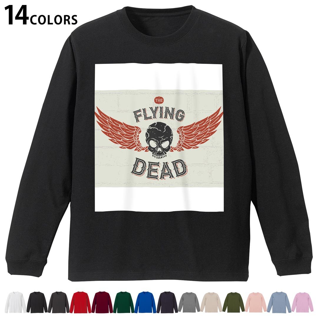 選べる14カラー 長袖リブ付きTシャツ メンズ レディース ユニセックス unisex 長袖 デザイン XS S M L XL 2XL Tシャツ ロング ティーシャツ T shirt 012268 スカル 羽 英語