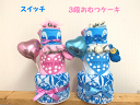【出産祝い】【おむつケーキ 3段 】【ディズニー】【スティッチ 】☆24☆送料無料 名入れ刺繍即日発送オムツケーキ